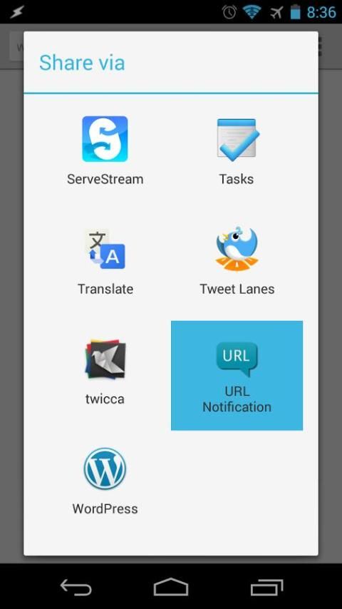 Ini adalah aplikasi untuk mengirim URL ke panel notifikasi. Anda dapat membuka URL dari pemberitahuan. Aplikasi ini memberi Anda cara yang berguna untuk sementara meninggalkan URL Anda ingin membaca nanti dalam kasus URL tidak begitu penting untuk menambah bookmark.