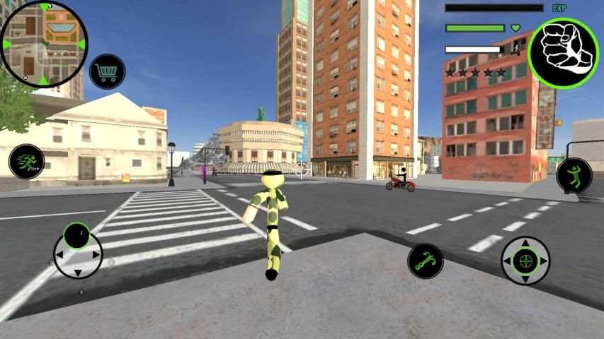 Gunakan keahlian baru Anda untuk menendang klon Pahlawan tali Stickman Anda keluar dari kota.