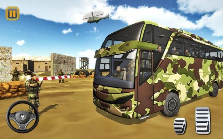 Berkendara di sekitar lingkungan kota besar untuk menjemput tentara AS untuk pelatihan dalam bus militer Anda dan membawa mereka ke kamp. Alami sensasi mengendarai bis tentara seperti gamer ahli dalam game simulator online gratis ini.