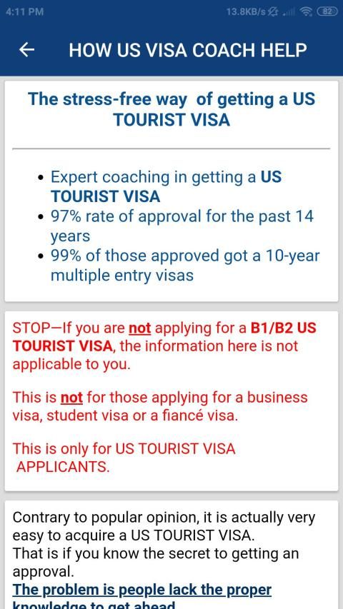US VISA COACH dapat membantu Anda melalui proses aplikasi. Tidak perlu stres, tidak ada waktu yang terbuang, tidak ada tambahan kehilangan keuangan. . . Lebih penting lagi, Anda tidak harus mengalami tekanan emosional karena mendapatkan penolakan.