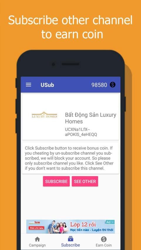 Anda perlu mengumpulkan Sub koin untuk membuat kampanye Anda dengan berlangganan saluran lain.