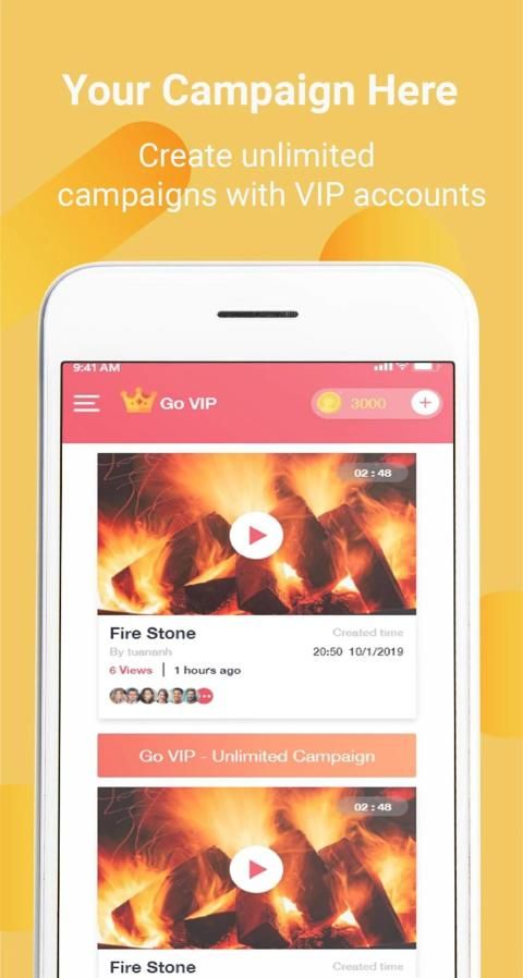 • Last, you use these coins to create the campaign boosting your video’s view.