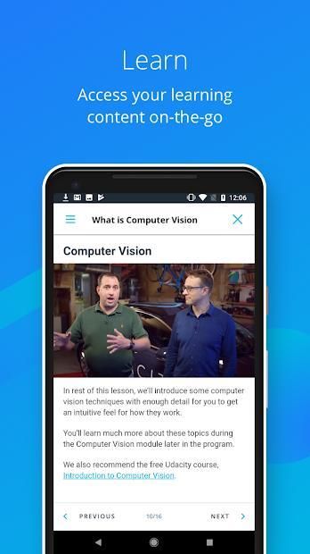The Udacity pengalaman mobile memberikan konten kelas dunia, melalui platform yang inovatif, dengan fleksibilitas yang optimal. Ini adalah masa depan Anda, hari ini.