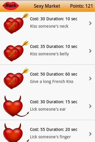 This game combine the classic slot machine game with a sexy game, to have fun with your partner or with some special friends, to a maximum of 4 players. Use the points that the slot give you at every turn to buy an action from a list of sexy actions with different costs and durations. The points are shared with all the other players, so you have to think fast: will you buy small and cheap actions or you will risk and wait for big points actions? There are more than 20 sexy actions and more will come soon, divided in 7 groups: soft actions, romantic, hot, group etc...Would you like to have some personalized actions? Mail us with the actions that you would like, we will consider to put the best of them into the list