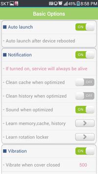- screen off, sensor On/off , clean memory and rotation control