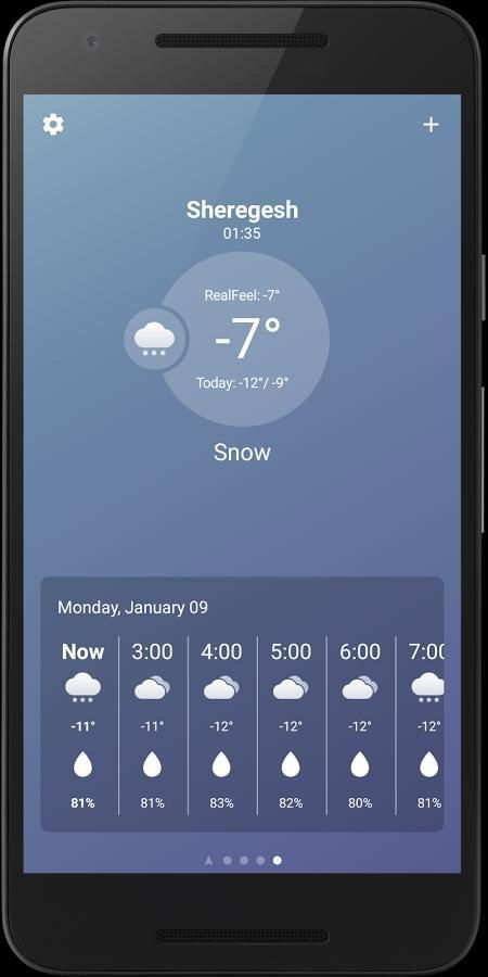 Ketika itu diluncurkan, aplikasi menunjukkan kondisi cuaca saat ini di lokasi Anda. Anda dapat menggunakan fungsi pencarian untuk dengan mudah memeriksa cuaca di lokasi lain di seluruh dunia dan menambahkannya ke lokasi favorit Anda.