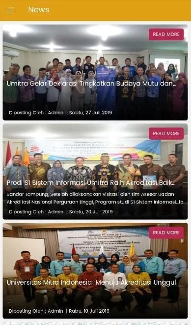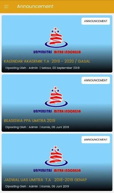 Aplikasi Umitra ini menyediakan berita dan pengumuman untuk menghubungkan dosen dan mahasiswa,