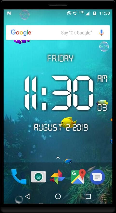 Automatically Change date, month and day of the week as per current time. Lots of options to display a new underwater background behind the clock. This is the real time live wallpaper.