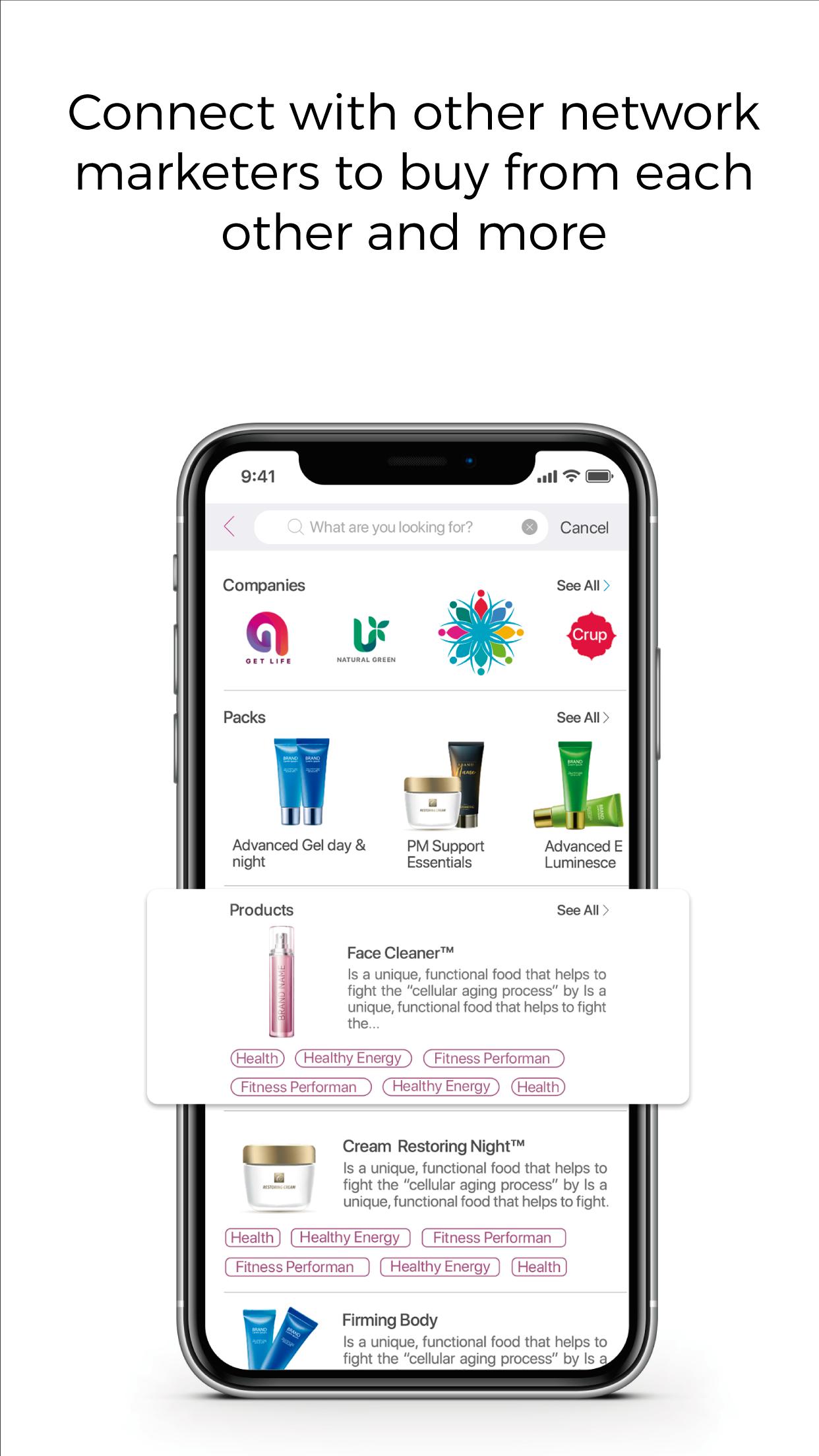 Anyone can use Unify to find products or services offered exclusively by MLM / Direct Selling / Multilevel Marketing companies and connect with their sellers.