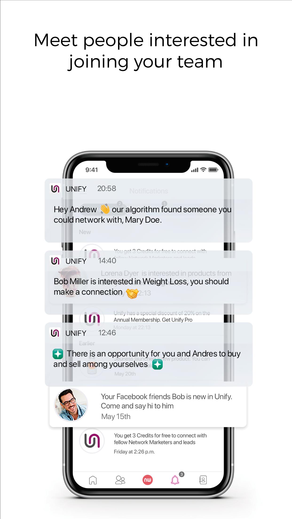 It’s proven that success in network marketing comes when you expand your network. With Unify you’ll meet people who are already involved in network marketing or who want to get involved - as customers or as network marketers - in a faster, easier and more efficient way than any other social network - such as LinkedIn, Facebook or Instagram -