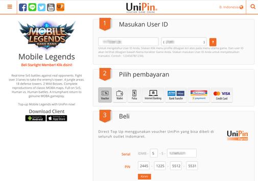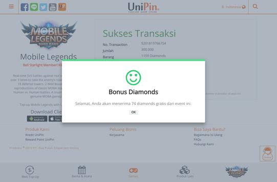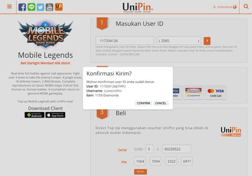 Rp 1,000 = 1,000 UC (UniPin Credits)