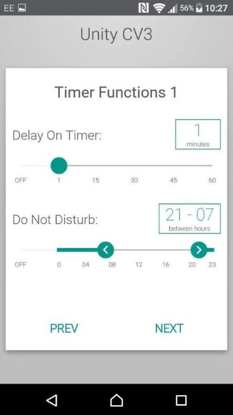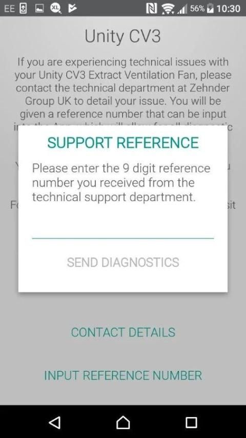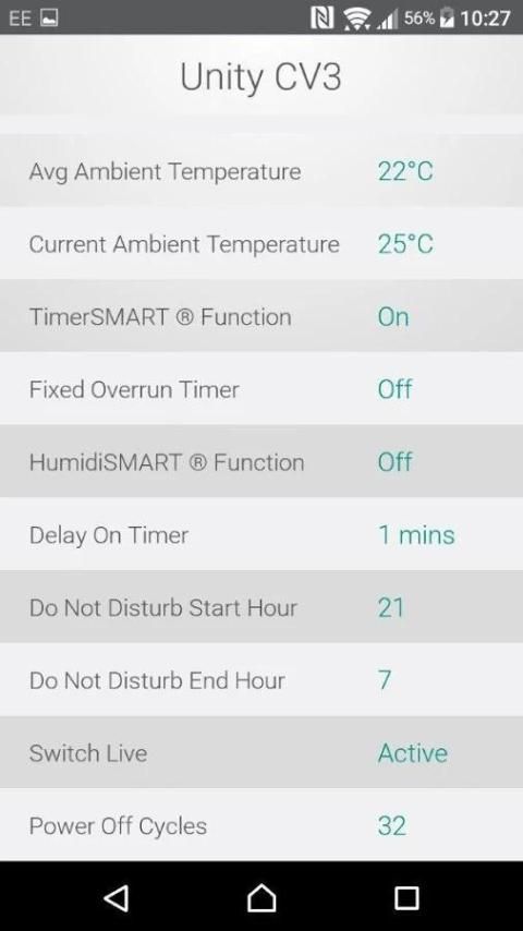 Aplikasi ini bekerja sama dengan kipas Unity CV3 memungkinkan pengguna untuk mendapatkan laporan tentang aktivitas fan termasuk itu tingkat aliran udara saat ini dan berapa lama telah berjalan selama. Hal ini dapat dipasangkan dengan beberapa fans. Aplikasi ini memiliki banyak fitur seperti commissioning CV3 di situs, itu adalah proses yang sangat sederhana untuk mengatur laju aliran & Timer pilihan. Pengguna memiliki kebebasan penuh untuk mengubah setiap pengaturan individu sesuai dengan keinginan mereka. Ada juga pilihan untuk mengaktifkan kode pin untuk keamanan tambahan.