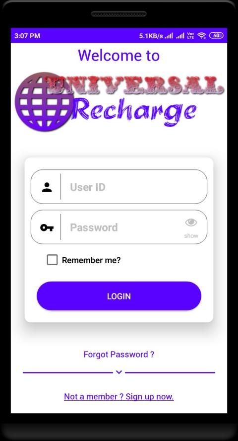 Universal Recharge adalah perusahaan yang berspesialisasi dalam teknologi Mobile, Data Card, dan DTH. Universal Recharge adalah platform pengisian ulang 24/7 yang pertama di India yang menyediakan fasilitas pengisian ulang semua penyedia layanan telekomunikasi, Kartu Data, dan operator DTH melalui Internet dan saluran Seluler. Ini adalah salah satu dari tiga situs web milik pribadi, operator independen, netral isi ulang teratas yang melayani lebih dari seribu pelanggan seluler terdaftar.