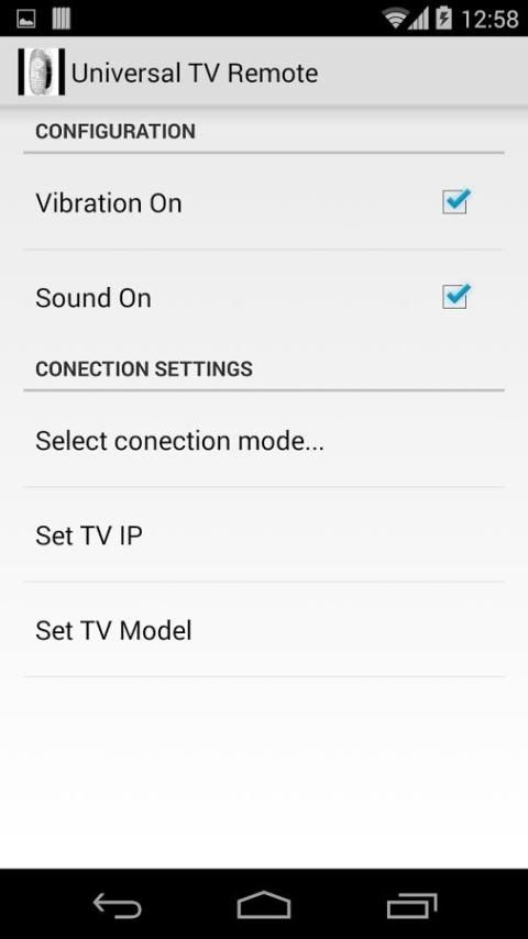 Perbedaan antara "Universal TV remote Pro" dan aplikasi lain dari gaya ini adalah bahwa dengan remote ini Anda dapat menggunakan port IR ponsel Anda, dan bekerja persis seperti universal remote nyata elektronik.