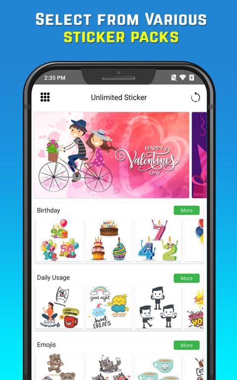 Unlimited Stickers is your one stop app for all categories of stickers.