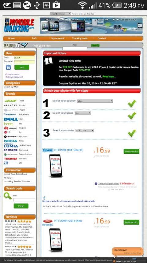 Kami menawarkan mudah untuk mengikuti petunjuk. Unlocking ponsel Anda bisa semudah membuat panggilan. Menempatkan diri di tangan kita.