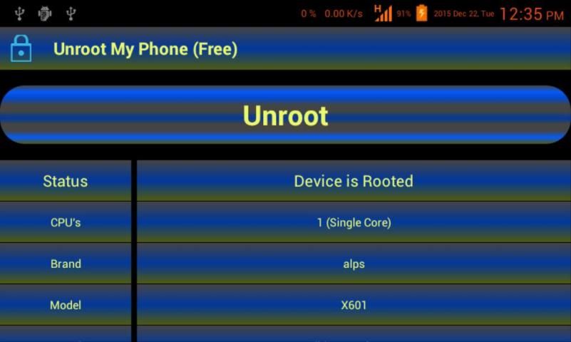 Cukup klik pada 'Unroot' tombol dan aplikasi akan mengurus sisanya. Setelah proses selesai perangkat akan reboot secara otomatis. Proses ini PERMANEN - tidak dapat dibatalkan.