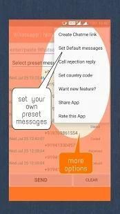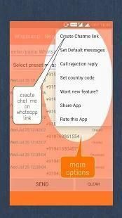 Now whatsapp any number without saving in contacts.Reject calls with whatsapp reply.You can generate 'click to whatsapp me' link in app.