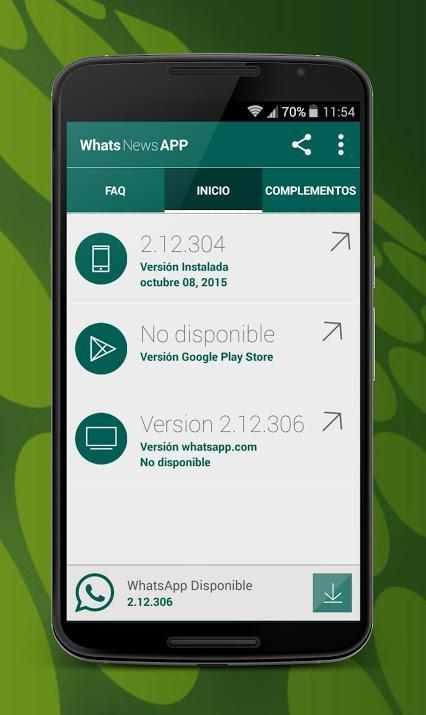Fungsinya sangat sederhana, memeriksa versi yang telah diinstal pada perangkat Anda dan jika ada versi yang lebih baru yang tidak ditemukan di Google Play. Selalu memiliki versi terbaru dari WhatsApp tanpa harus melalui website resmi mereka.
