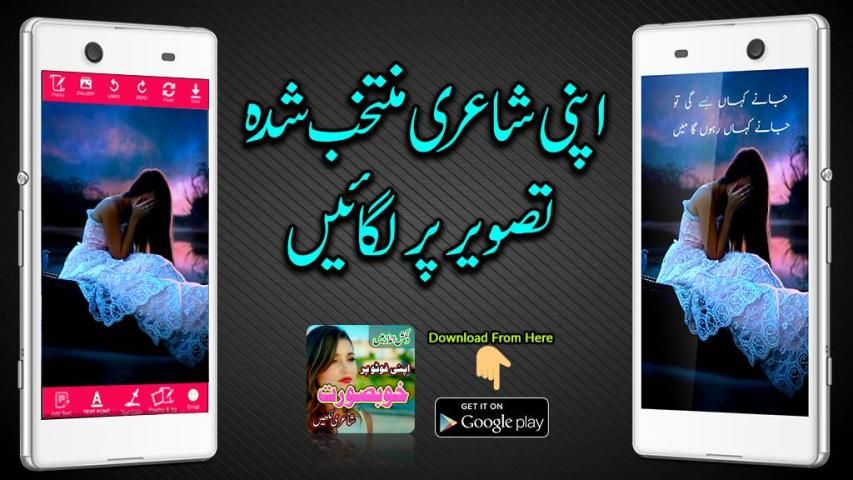 Urdu Poetry on Photo With Urdu Keyword app is the best app of stylish and rich collection of Love, sad, romantic, friendship, rain and December poetries (Shayeri) and backgrounds. You can also write your own Urdu poetries with the help of Urdu keyboard on awesome collection of backgrounds using Urdu Poetry on Photo app. Urdu Poetry on Photo app is the stylish name maker app in Urdu and English typographies. You can change your text color of your name or poetry.