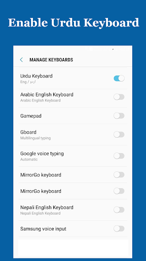 - Nyalakan atau Aktifkan "Keyboard Urdu (Eng / اردو)" dan kembali ke aplikasi.