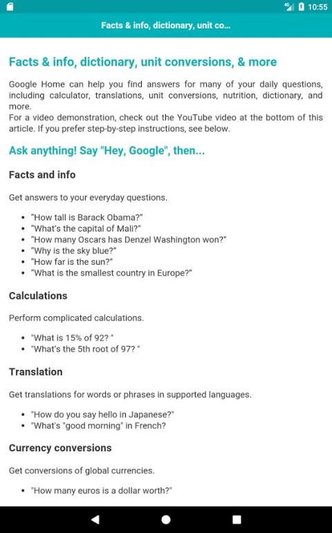 Ada begitu banyak hal ditambahkan dalam aplikasi ini seperti hal-hal keren yang dapat Anda lakukan dengan google rumah Anda, perintah suara yang paling berguna, tips dan trik. Menginstal aplikasi, belajar dan berbuat lebih banyak dengan Depan Google.