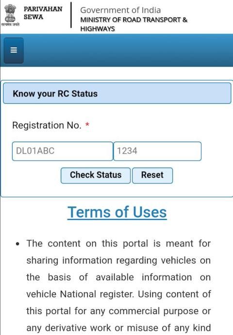 * Departemen Transportasi Jalan dan Jalan Raya / NIC tidak bertanggung jawab atas interaksi / lewat informasi (s) dll antara setiap pengguna melalui e-mail, chatting dan setiap mediasi lainnya dengan pengguna lain. Kementerian Transportasi Jalan dan Jalan Raya / NIC tidak berkewajiban untuk memantau perselisihan seperti yang timbul antara pengguna dan tidak dapat menjadi pihak dalam sengketa tersebut / litigasi dll