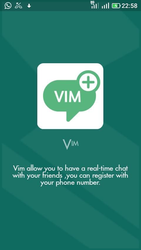 VIM juga dapat digunakan oleh orang di seluruh dunia untuk berkomunikasi dengan teman dan keluarga. VIM memungkinkan Anda untuk memiliki real-time chatting dengan teman-teman Anda, Anda dapat mendaftar dengan nomor telepon Anda.