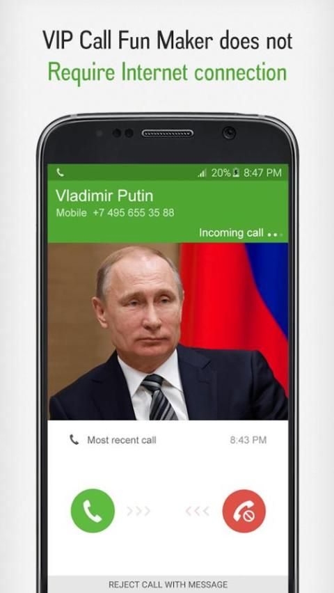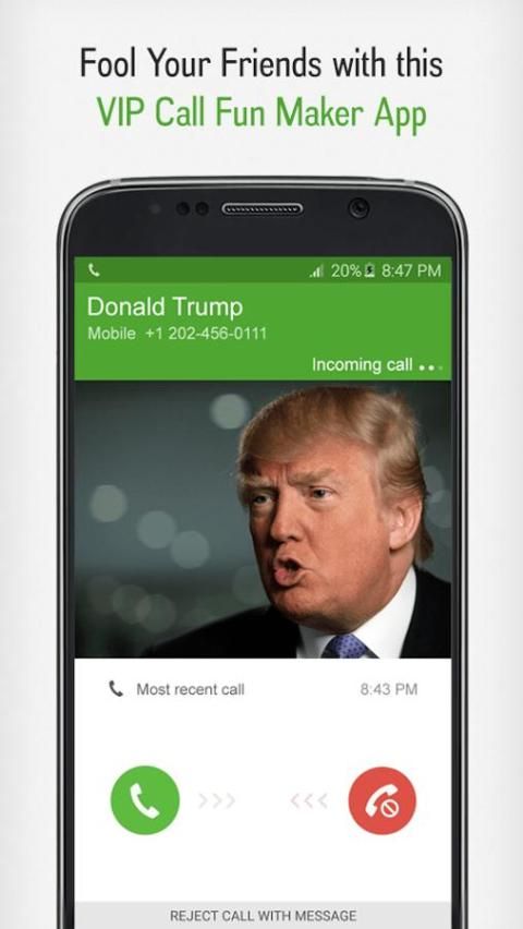 Menipu teman Anda dengan VIP palsu ini Panggilan masuk Prank. Telepon akan berdering menampilkan Gambar, Nama dan nomor Mobile. Setelah menjawab panggilan, Anda akan mendengar suara yang telah Anda pilih.