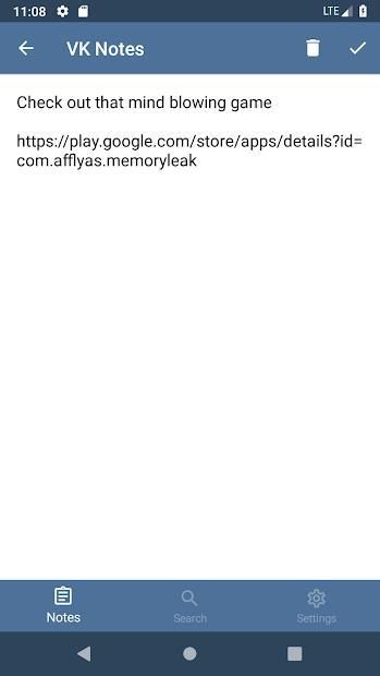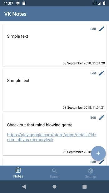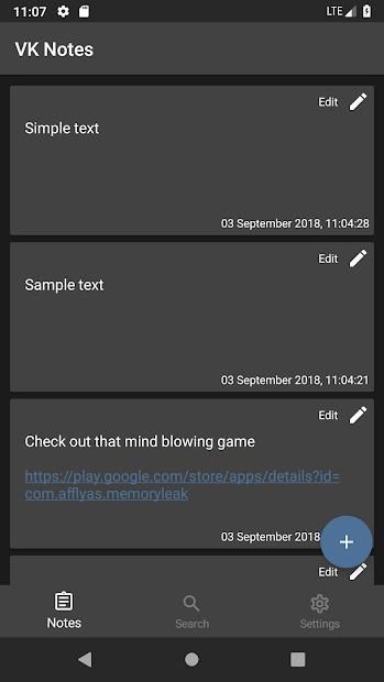 - All notes are synchronized with your VK account