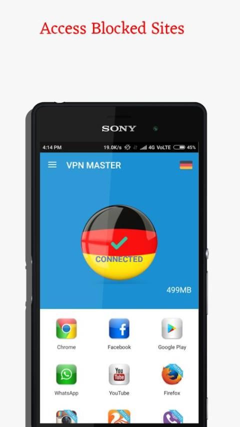 Tidak ada perlu account, hanya satu kali klik untuk menghubungkan. JERMAN VPN tidak melacak atau menyimpan setiap log dari para penggunanya dan kegiatan mereka.
