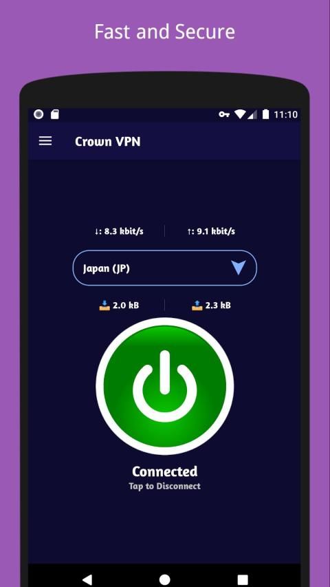 Crown VPN - VPN Private Proxy uses servers in high-speed internet countries such as France, Singapore, USA, Japan, Netherlands, Germany, Italy and so on.