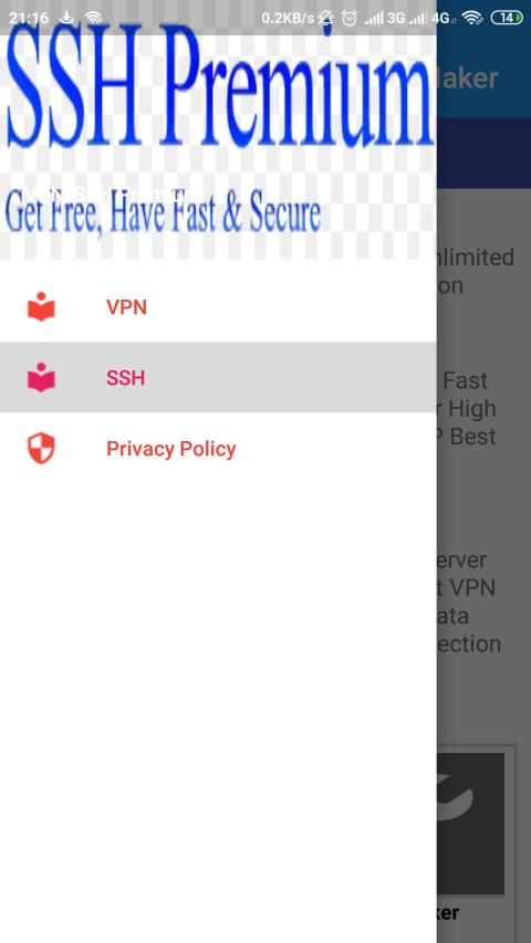 With SSH Tunnel Maker you can create SSH/VPN Account and connect with VPN Mode to many server options.
