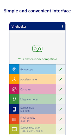 Pemeriksa VR adalah aplikasi gratis dan sederhana yang memeriksa kompatibilitas perangkat Anda dengan teknologi VR.