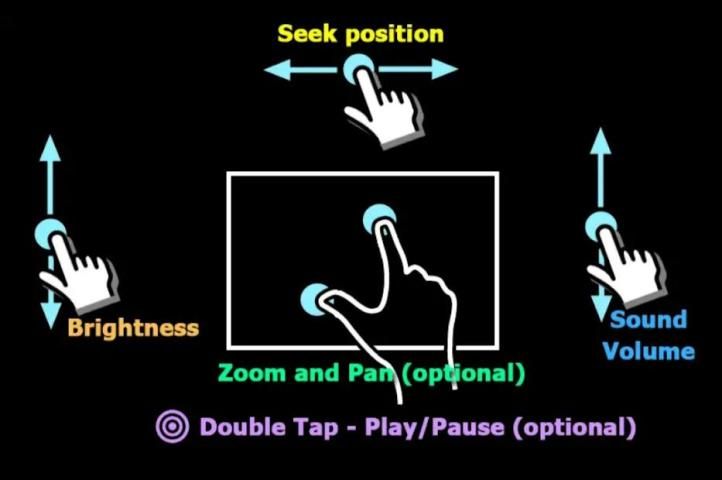 d) SUBTITLE GESTURES - Scroll forward/backward to move to next/previous text, Up/down to move text up and down, Zoom in/out to change text size.