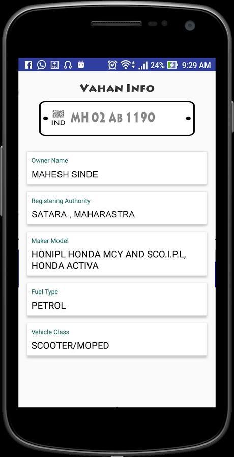 VahanInfo - RTO memberikan rincian kendaraan India terdaftar, yang adalah pemilik dengan hanya memberikan Nomor Kendaraan