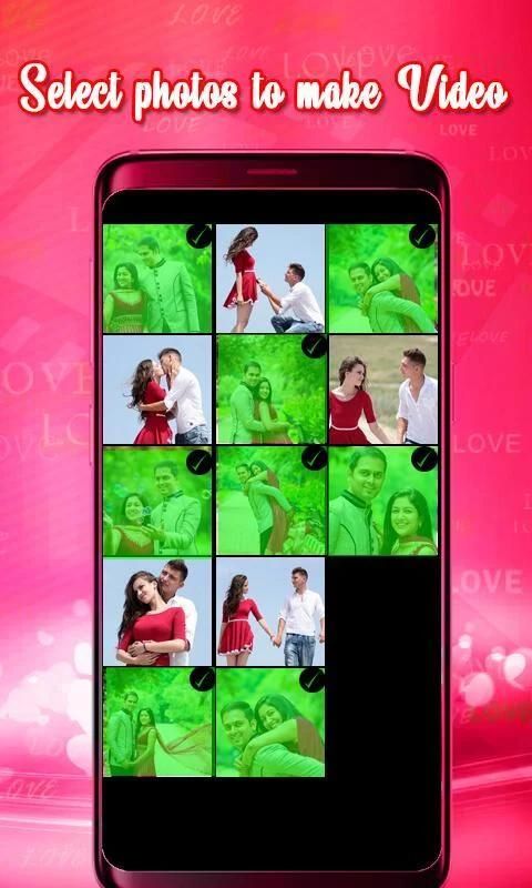 Yang perlu Anda lakukan untuk membuat video paling romantis dan trendi untuk kekasih Anda adalah mengunduh dan menginstal Cinta Video Editor ini dengan Musik - aplikasi Photo Video Maker. Pilih foto kekasih Anda dari galeri seluler dan susun sesuai urutan yang Anda inginkan saat Anda tampil di video. Pilih jangka waktu dari daftar untuk mengubah foto secara otomatis. Terapkan bingkai foto Cinta di video dan simpan video.