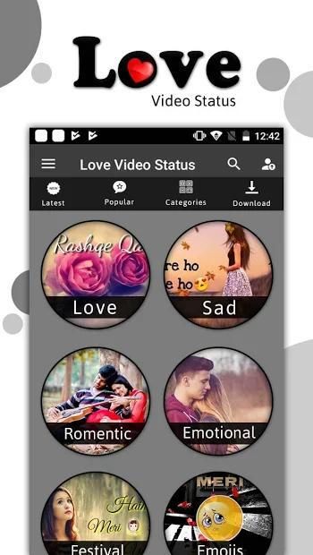 Hindi Video Status for Whatsapp app has a large collection of best video songs to share on your WhatsApp status.