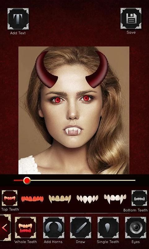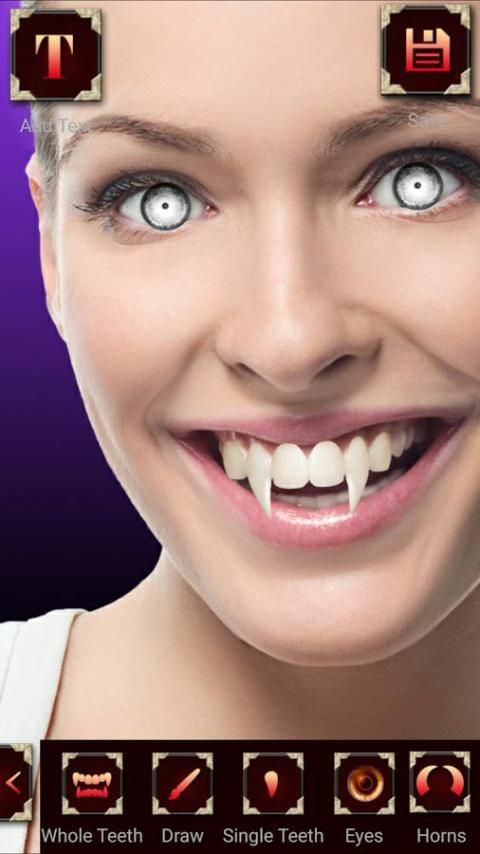 Kamu bisa nambahin gigi taring, mata vampir, dan lainnya yang terkait dunia vampir.