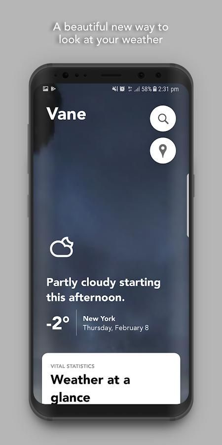 Memanfaatkan ikon sederhana dan font bersih untuk memberitahu cuaca, Vane doesnt beban mata Anda dengan rincian uneccessary melainkan menyajikan informasi yang penting bagi Anda dalam cara yang terbaik.