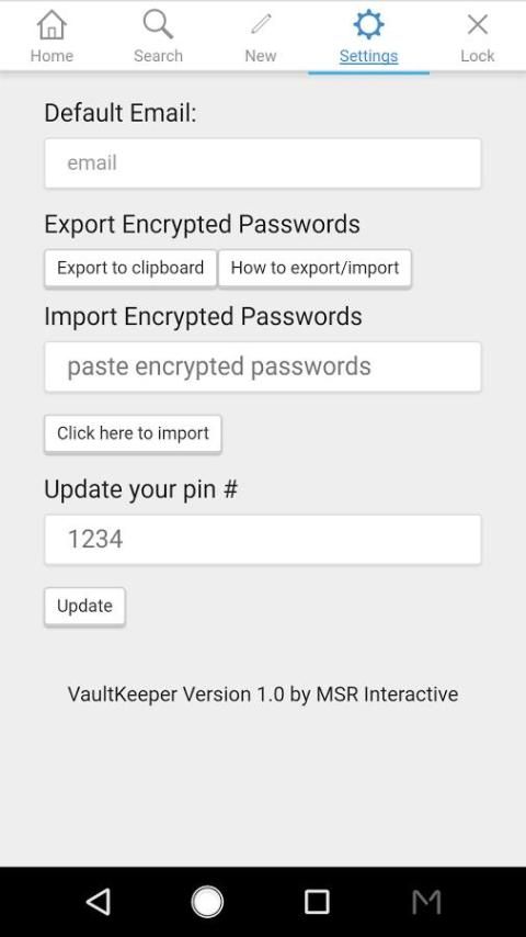 The VaultKeeper password generator yang mampu menghasilkan lebih 750.000.000.000.000 password terbaca-manusia unik yang gila-gilaan sulit untuk retak. daftar kata sandi Anda disimpan secara offline dalam aplikasi dalam format terenkripsi yang asin dengan pin # dan hash acak. VaultKeeper memanfaatkan perpustakaan enkripsi Stanford University JavaScript. Mendukung dienkripsi file ekspor dan impor.