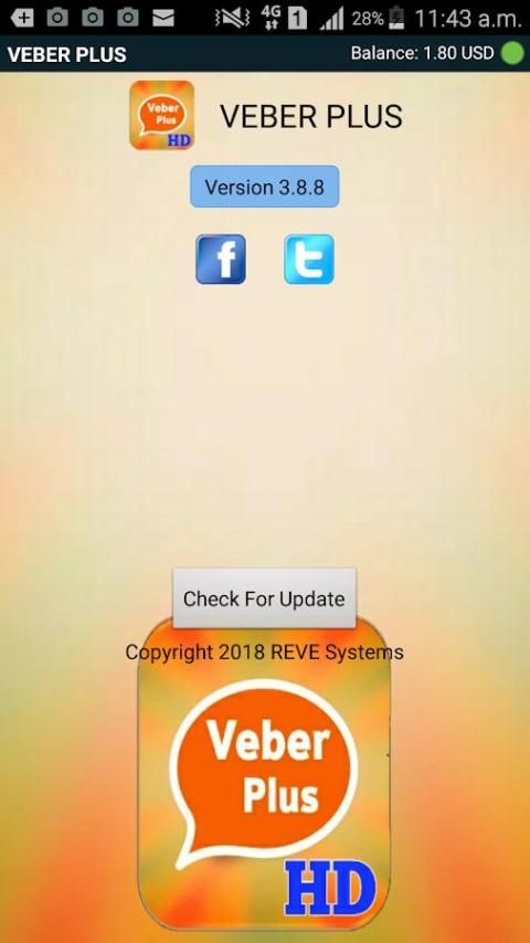 VeberPlus HD Platinum Dialer adalah aplikasi mobile untuk Android dan smartphone lainnya, menawarkan berbagai fungsionalis seperti VoIP Panggilan, cross-OS Instant Messaging, penggunaan Calling Card otomatis dan banyak lagi dari data ponsel diaktifkan (3G / 4G atau WiFi).