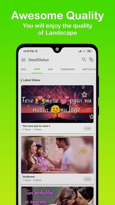 Enjoy best app for Collection of Video status in various language and various categories.