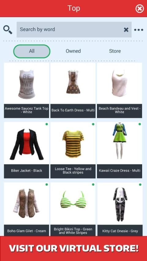 • Sebuah toko virtual terus berkembang dari pakaian dan kostum untuk berpakaian Veemee Anda, termasuk merek dunia nyata.