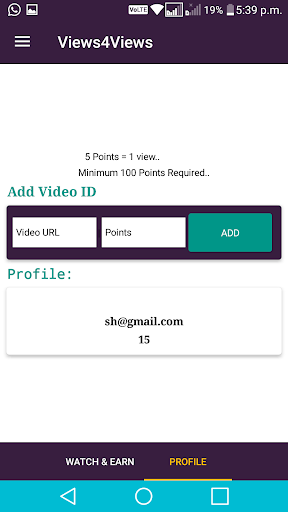 Dalam aplikasi ini Anda dapat memperoleh poin dengan menonton video YouTube yang lain dan dengan bantuan poin-poin ini, Anda dapat menambahkan video YouTube Anda untuk menonton lebih banyakPoin dengan kegiatan yang berbeda.