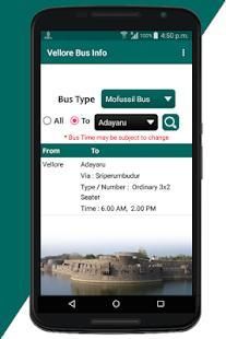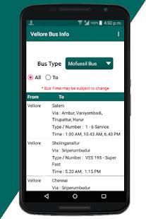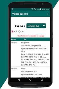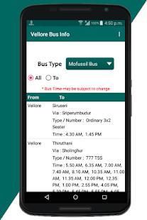 This app provide all information about Vellore Mofussil bus and Town bus.