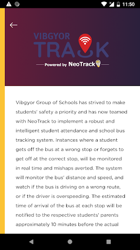 Ini adalah solusi pelacakan bus sekolah untuk orang tua Vibgyor yang ditenagai oleh Neotrack.