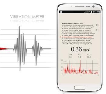 Vibration meter can also be called seismometer. Use this app only for reference because android devices have a wide of performance and sensitivity.