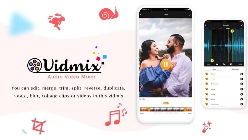 Sekarang, menjadi populer untuk berbagi perasaan Anda di media sosial terutama untuk WhatsApp. Sekarang Anda dapat menambah atau mengubah musik dalam video dengan menggunakan ini atau mencampurnya dengan video dengan menggunakan alat editor video yang hebat VidMix, aplikasi ini mengelola ukuran file audio jika panjang file audio lebih besar dari file video, itu akan secara otomatis memotong audio menjadi durasi video.