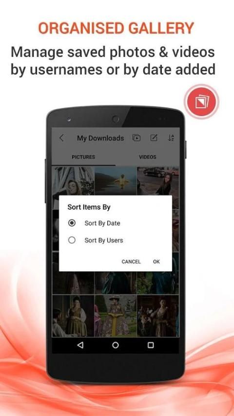 Urutkan download foto dan video dengan nama pengguna dan tanggal menggunakan aplikasi ini galeri inbuilt.